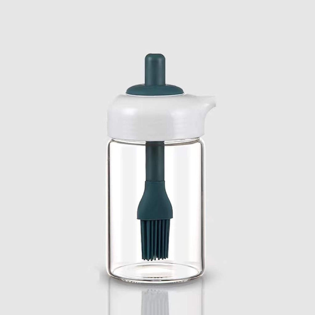 2 in 1 Glass Oil jar / Bottle with brush for kitchen glass oil dispenser with brush Borosilicate Transparent oil storage bottle container with applicator brush (1 Set)