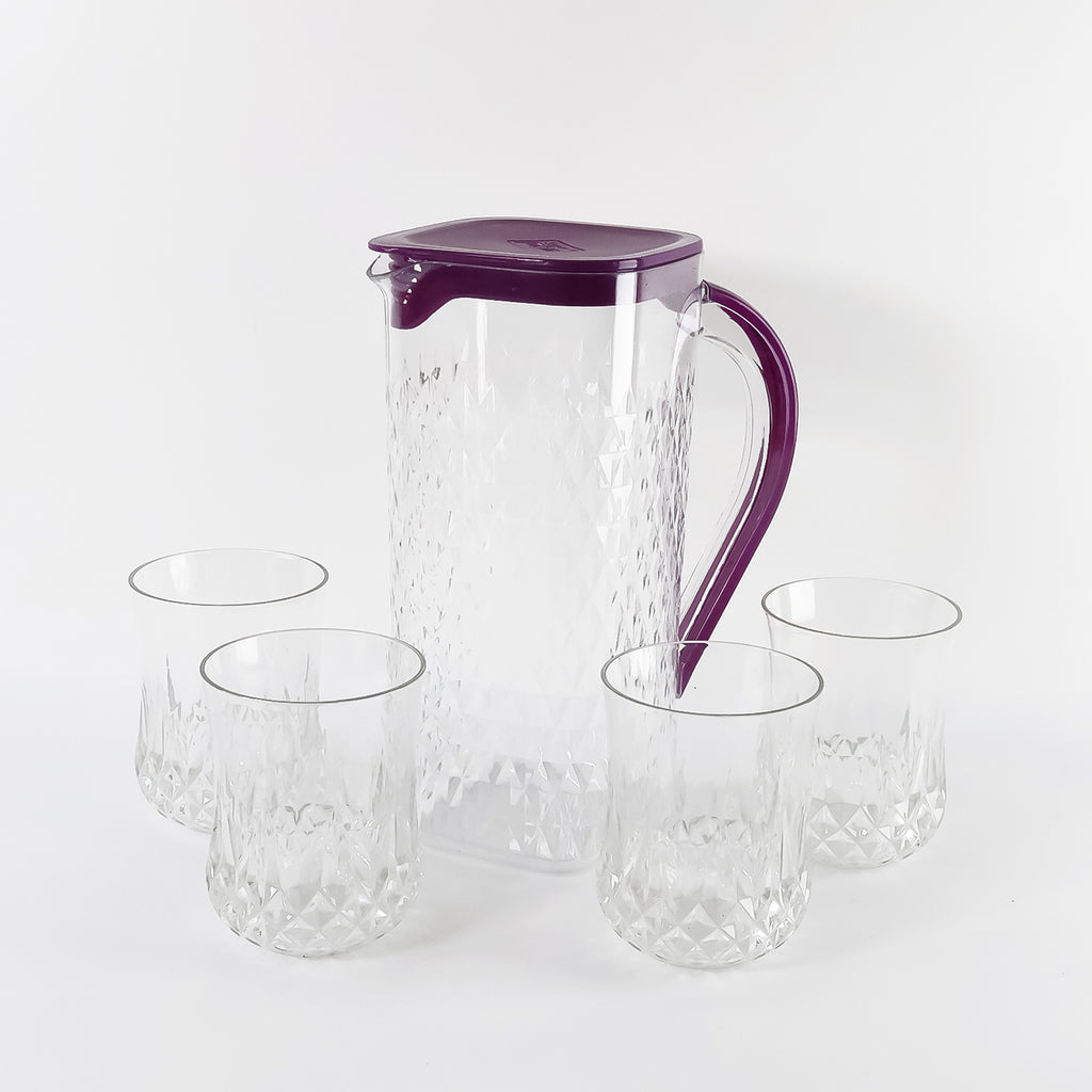 Supermom ROMA 5-Piece Diamond-Cut Plastic Jug with 4 Glasses Combo Set – 1500 ML Pitcher and 4 x 300 ML Tumblers, Food Grade, BPA-Free, Ideal for Water, Juice, and Serving