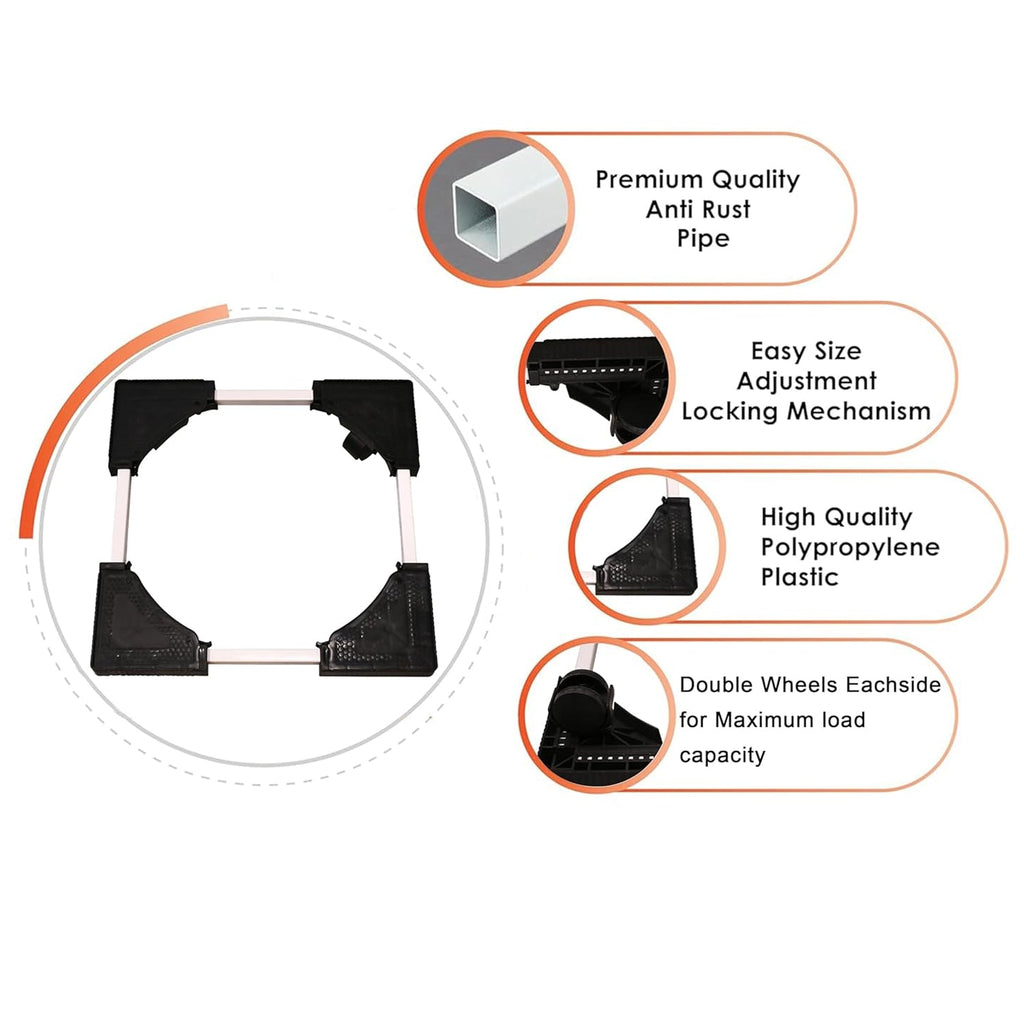 Adjustable Heavy-Duty Fridge and Washing Machine Stand Base Trolley – 50x50 cm Expandable Movable Roller Stand with Locking Wheels and Anti-Vibration Corners – Ideal for Refrigerator, Washer, Dryer & Large Appliances